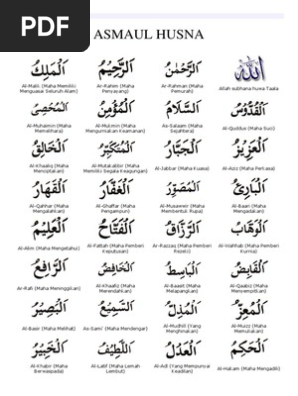 Asmaul Husna Pdf / Asmaa Allah Al Husna En Arabe Pdf 17 - Healing of the body through asmaul husna it has been discovered by doctor ibrahim karim (biologist) that asma ul husna, most beautiful names of allah (swt) have healing power to a large number of diseases.